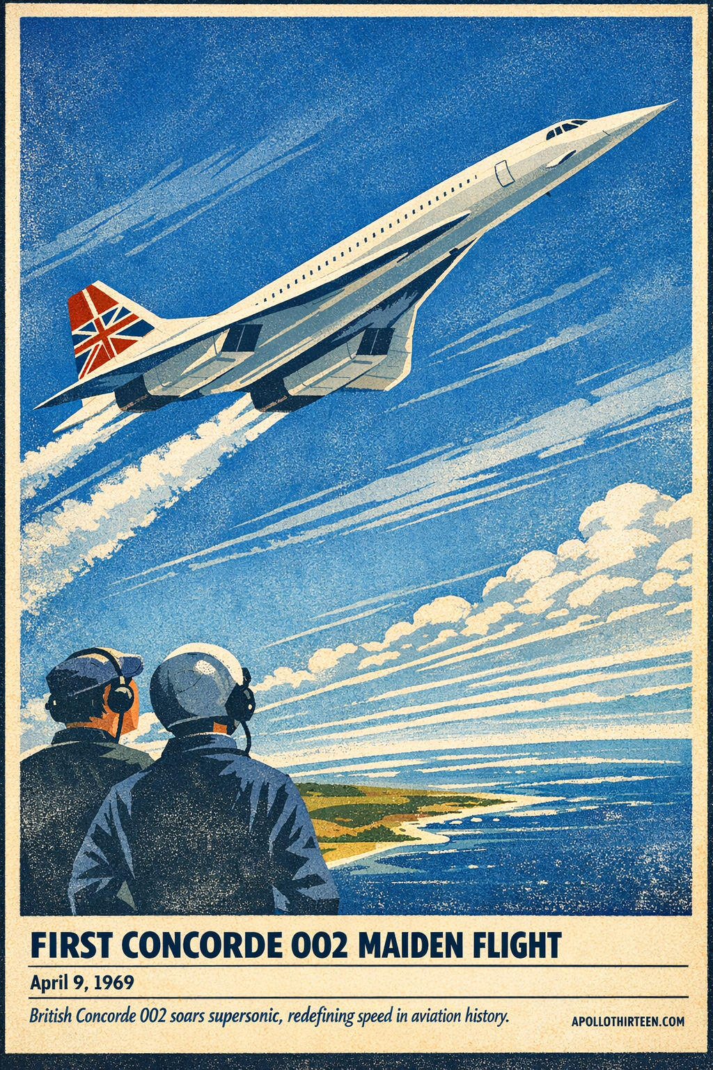 Heute vor siebenundfünfzig Jahren riss der britische Himmel über Filton bei Bristol mit einer neuen Art von Versprechen auf. Es war ein dünnes, nadelspitzes Versprechen: eine weiße Delta-Silhouette, die das Blau selbst zu zerschneiden schien. Am 9. April 1969 hatten sich Tausende von Menschen auf kaltem Gras und windgepeitschten Hügeln versammelt, reckten die Hälse und blickten durch Kameralinsen, um zuzusehen, wie eine für die Zukunft gebaute Maschine den Boden verließ. Als die Concorde 002 in die Luft abhob und in Richtung RAF Fairford verschwand, trug sie nicht nur Passagiere einer fernen Zukunft in sich, sondern eine Wette – auf kühne Ingenieurskunst, nationalen Stolz und die Unverfrorenheit der Geschwindigkeit.